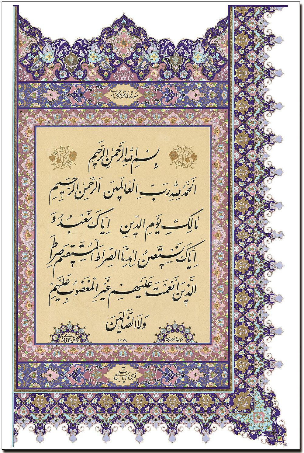 دیدار از نمایشگاه هنر استادانۀ تذهیب در طرحها و نقش و نگاره های اسلیمی و سرلوح های شگفت انگیز در رنگهای بدیع که به تمامی تازگی داشت و خیره کننده بود و جلوه گاهی از شاهکارهای قریحه خلاق و رنگ آمیزی تاریخی و نمایش هنر ملی و شاهکار در رنگ آمیزی های جدید و نقوش تزئینی ایرانی که سابقه ای چندین هزار ساله دارد و از نقوش آثار ملی است جای بسی شگفتی است."