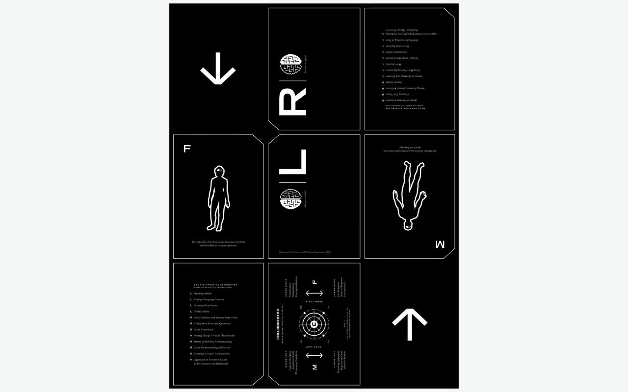 اولاک اشاره می کند:«برای این مهم که هنر و تجارت از کجا سرچشمه می گیرند از ایده ی سمت چپ و راست مغز استفاده کردم.جدول ها و تصاویر را با تایپوگرافی ترکیب کردم و به محض این که حس کردم مناسب است در مورد فعالیت نیمکره ی چپ و راست مغز توضیحاتی دادم و بدین ترتیب خوانندگان و مخاطبین من به این پیام پی بردند.»